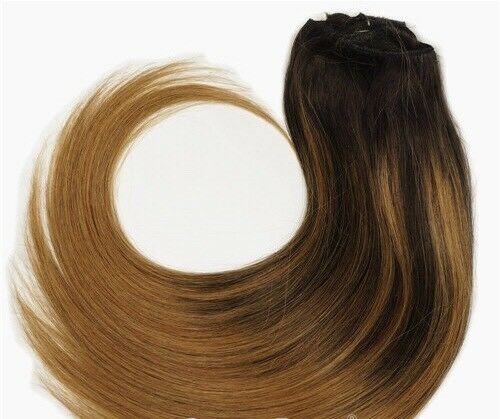 Luxury 100g Weft Human Hair Extensions #2/6 Balayage Ombre Dark Brown Straight